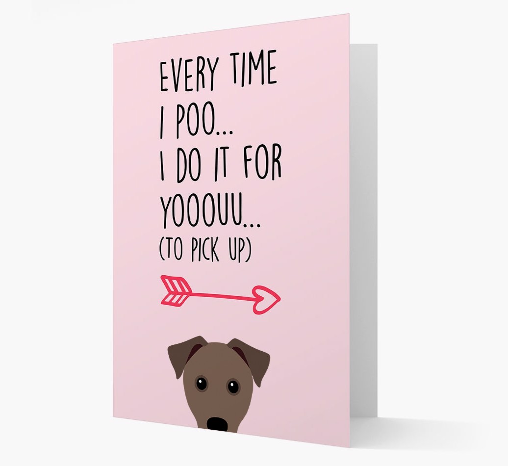 Printed with the words ‘Everytime I poo… I do it for youuuuu (to pick up)’, this lyrical card is personalized with our famous Mutt icon – so it’s clear who’s been leaving you all those delightful ‘gifts’ to pick up!