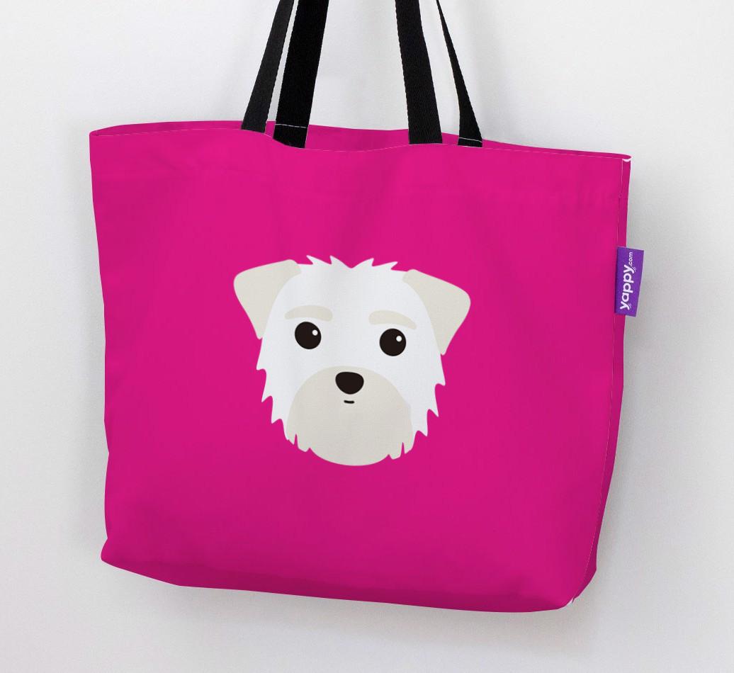 This Canvas Bag features an exclusive Morkie icon printed on a bright, bold background.