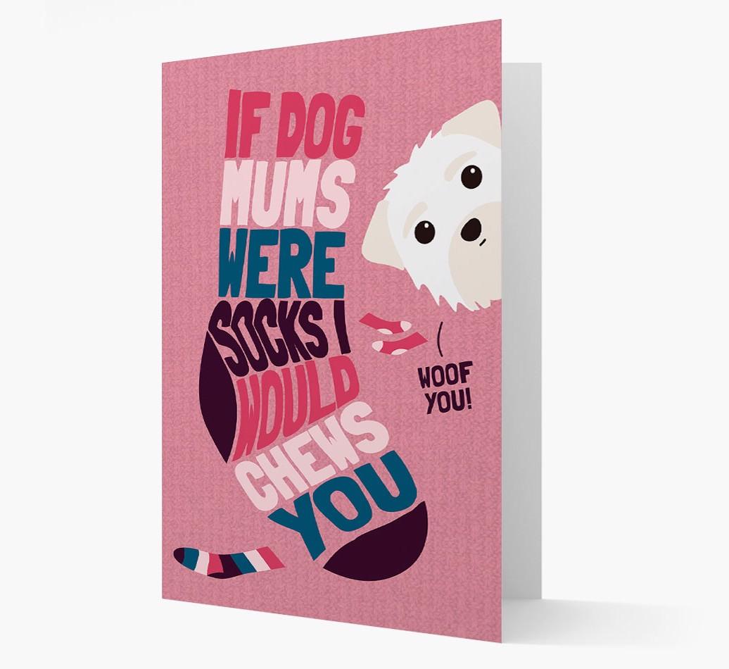 This comical card is pawfect for the Dog Mom who's pawrent to a sock-loving Morkie.