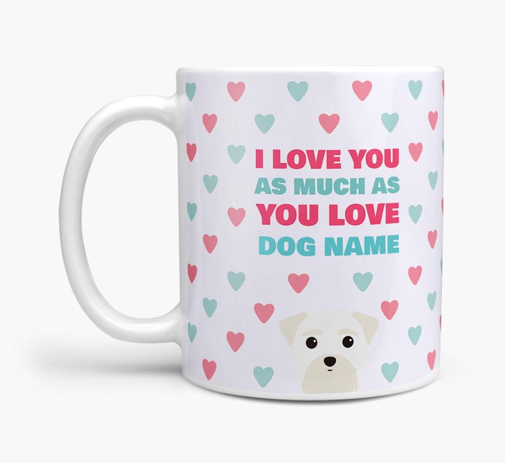 Featuring a pattern of hearts and personalized with Morkie's name and their adorable icon, this mug is sure to make the receiver feel plenty of love and warmth towards you – and that’s not just from their coffee!