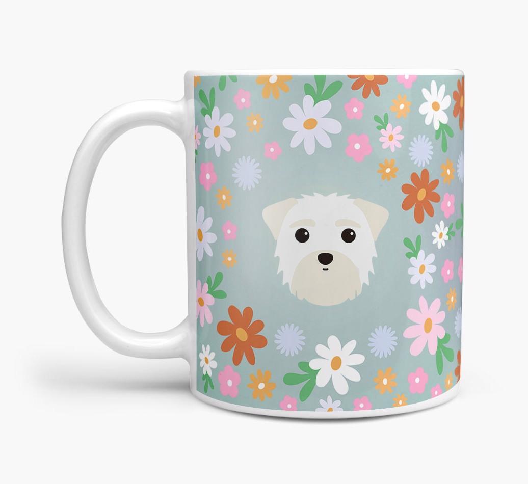 Featuring a colorful bunch of flowers, this mug is printed with the words 'woofly grandma' on one side of the mug and your Morkie's cute icon on the other. Bloomin' lovely!