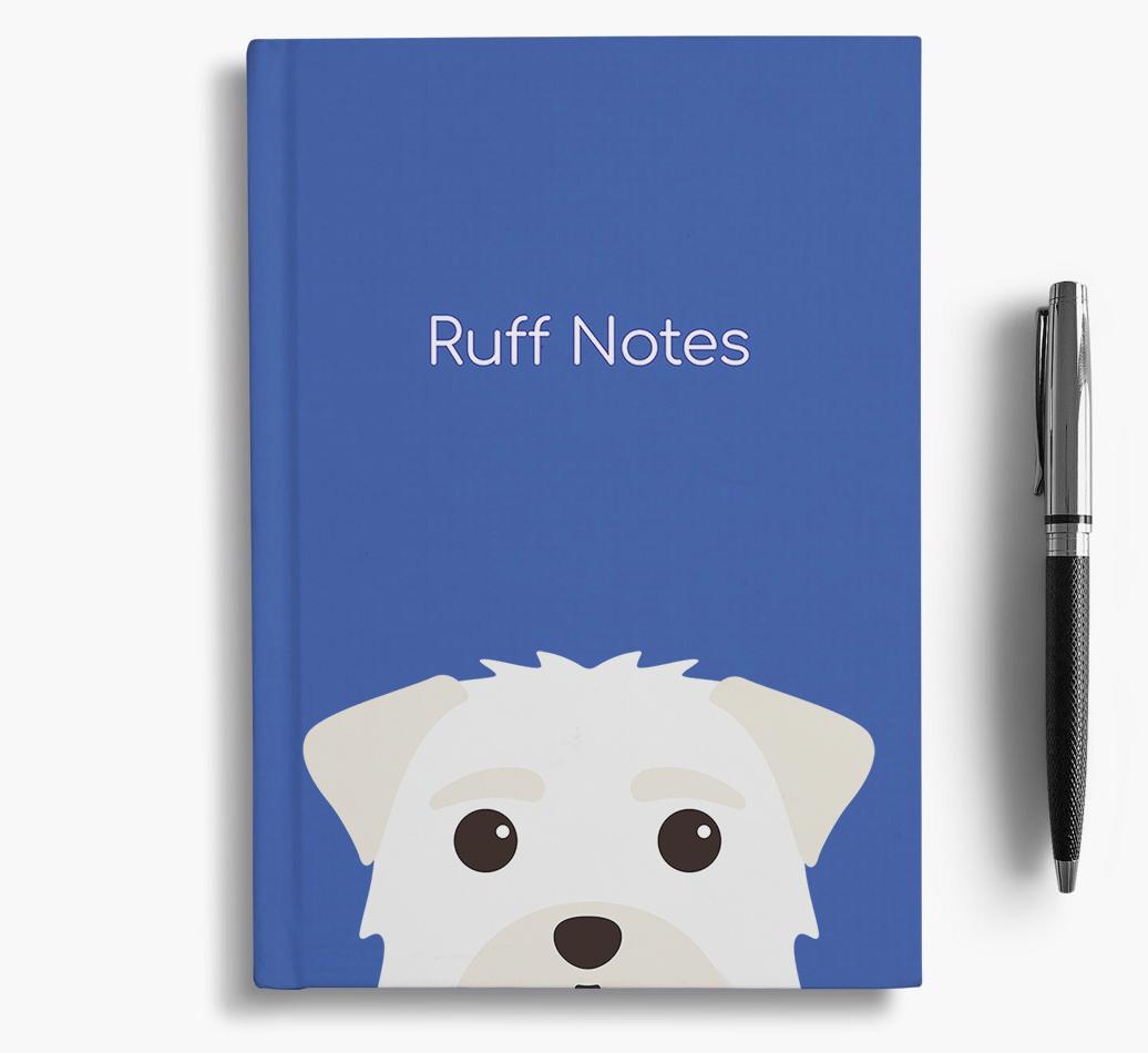 The front cover features our exclusive Morkie peeking icon and is printed with the words, ‘Ruff Notes’, whilst the back is printed with the words ‘Live. Laugh. Woof.’.