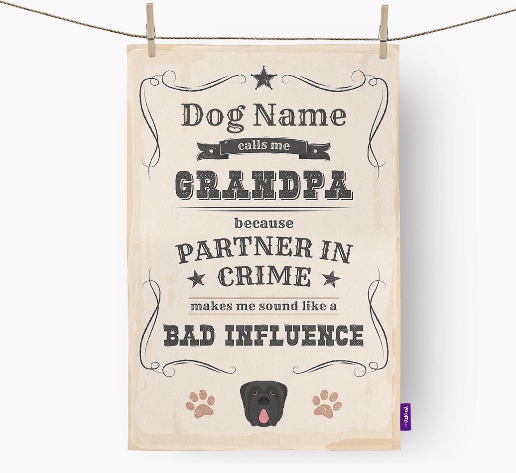 Are your grandpa and Your Neapolitan Mastiff a mischievous pair when their together? Well, this dish towel will let all his guests know that Your Neapolitan Mastiff and grandpa really are partners in crime (even if he doesn't want to admit it)!