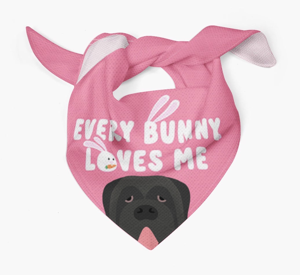 Tailored with the fabulous saying: 'Every Bunny Loves Me', this bandana is the perfect addition to your Neapolitan Mastiff's wardrobe! Available in four egg-ceptional colors and personalized with your Neapolitan Mastiff's icon, this is the perfect pawchase for Easter!