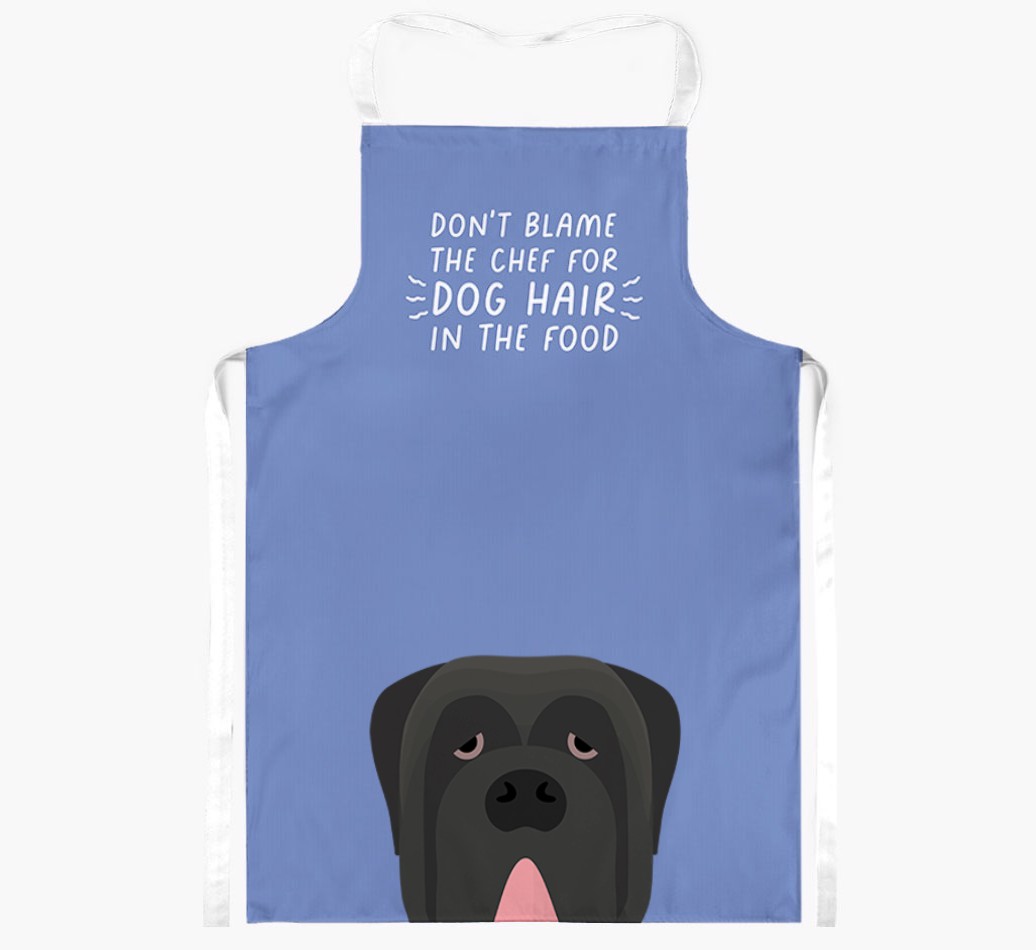 This funny apron will warn friends and family not to blame the chef for dog hairs in their food, they have Neapolitan Mastiff to thank for that!