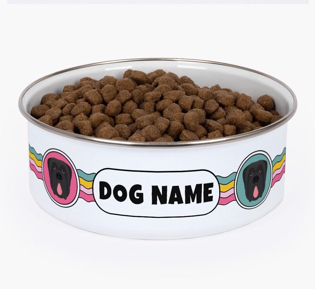 Featuring a vibrant wave design and personalized with Neapolitan Mastiff's name and icon, this enamel bowl is pawfect for adding a pop of color to your home. Plus, as it's complete with a travel lid, it's great for food or water refills when you're out and about.