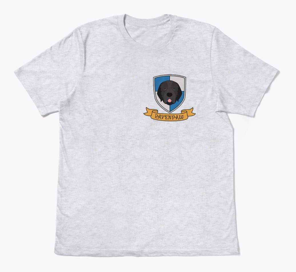 Personalised with Newfoundland's icon upon a shield that features your blue (dog) house color, this magical t-shirt will bewitch anyone who's a fan of your fantastical Newfoundland and all things "Hairy Pawter".