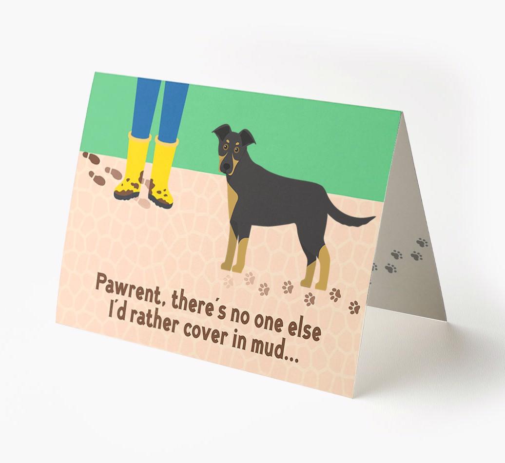 This comical card is sure to delight New Zealand Huntaway's pawrent (without getting muddy), especially as it stars their Huntaway's cheeky icon.