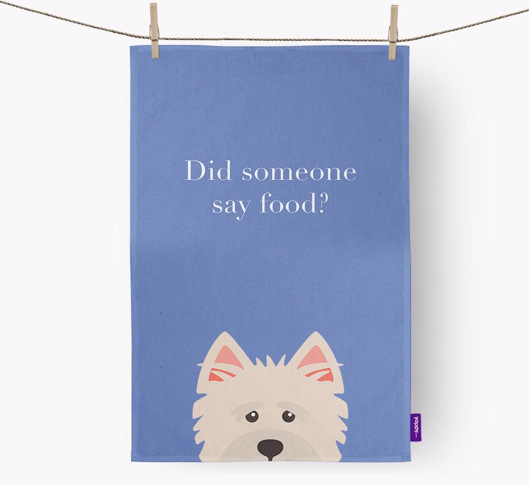 Printed with the question, ‘Did someone say food?’, this dish towel knows exactly what’s on Your Norfolk Terrier’s mind.
