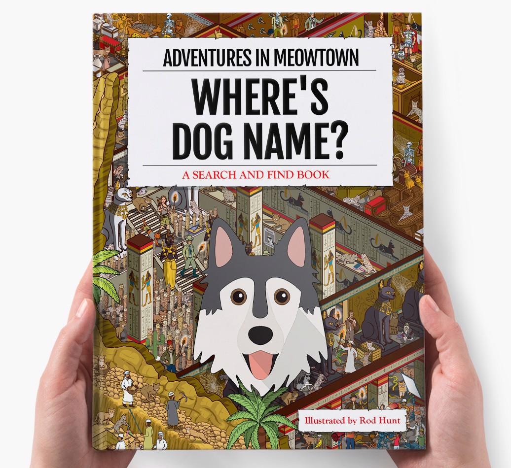 Get ready to unleash your inner detective with our popular Search & Find book, ‘Where’s (insert dog name)?’ It’s the personalized dog book everyone’s yapping about! With twelve beautifully illustrated locations to explore, we challenge you to find your adventurous {breedShortName} on each action-packed page. Can you spot all the canine cameos and funny parodies too?