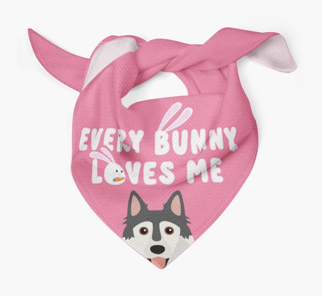 Tailored with the fabulous saying: 'Every Bunny Loves Me', this bandana is the perfect addition to your Northern Inuit's wardrobe! Available in four egg-ceptional colors and personalized with your Northern Inuit's icon, this is the perfect pawchase for Easter!