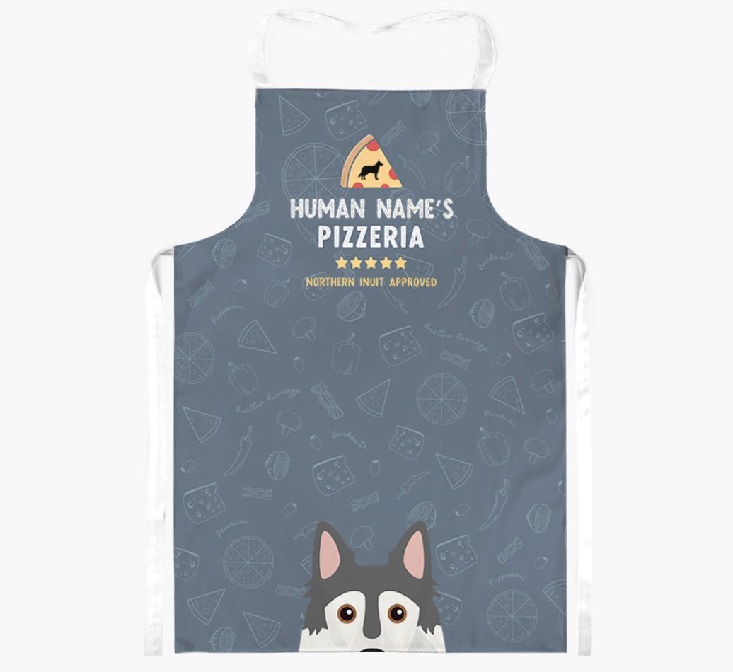 Featuring your furry friend's icon and lick of approval, plus your chosen human name, this apron is pawfect for anyone who considers themselves a pizza maestro in the kitchen. Available in a choice of 5 rustic colors, it'll make any Northern Inuit lover happy.