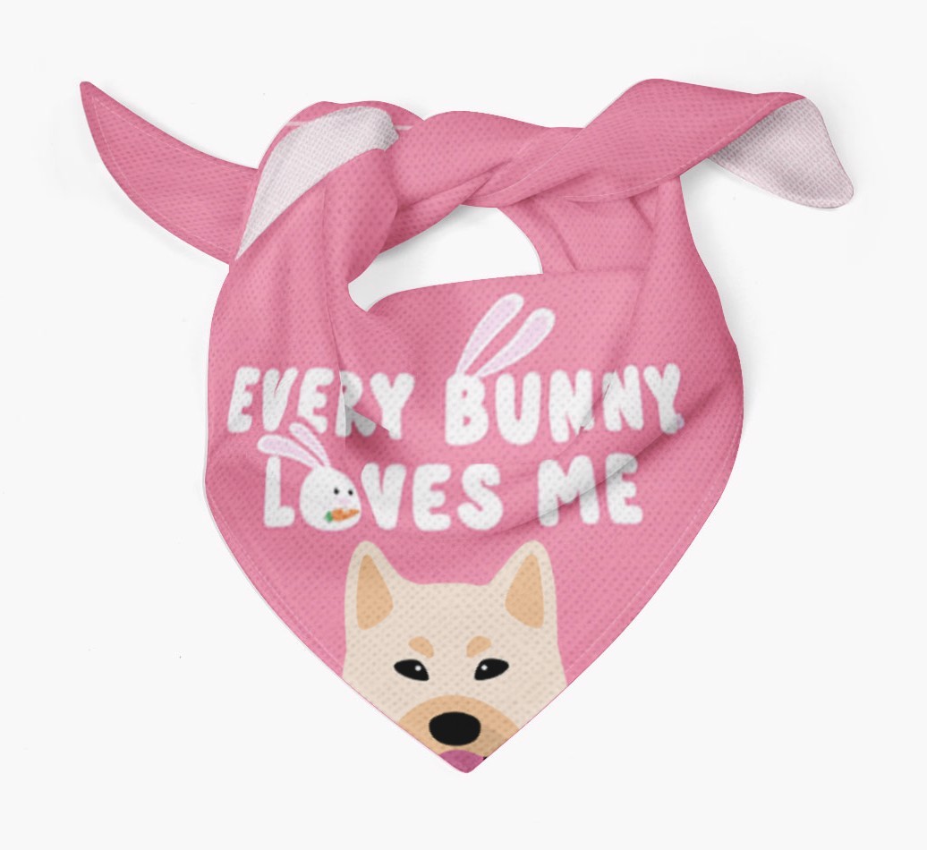 Tailored with the fabulous saying: 'Every Bunny Loves Me', this bandana is the perfect addition to your Norwegian Buhund's wardrobe! Available in four egg-ceptional colors and personalized with your Norwegian Buhund's icon, this is the perfect pawchase for Easter!