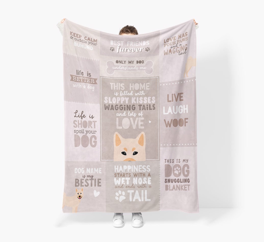 Filled with pawgeous quotes about your furry friend, this blanket is the perfect way to make naptimes with your Buhund the coziest ever.