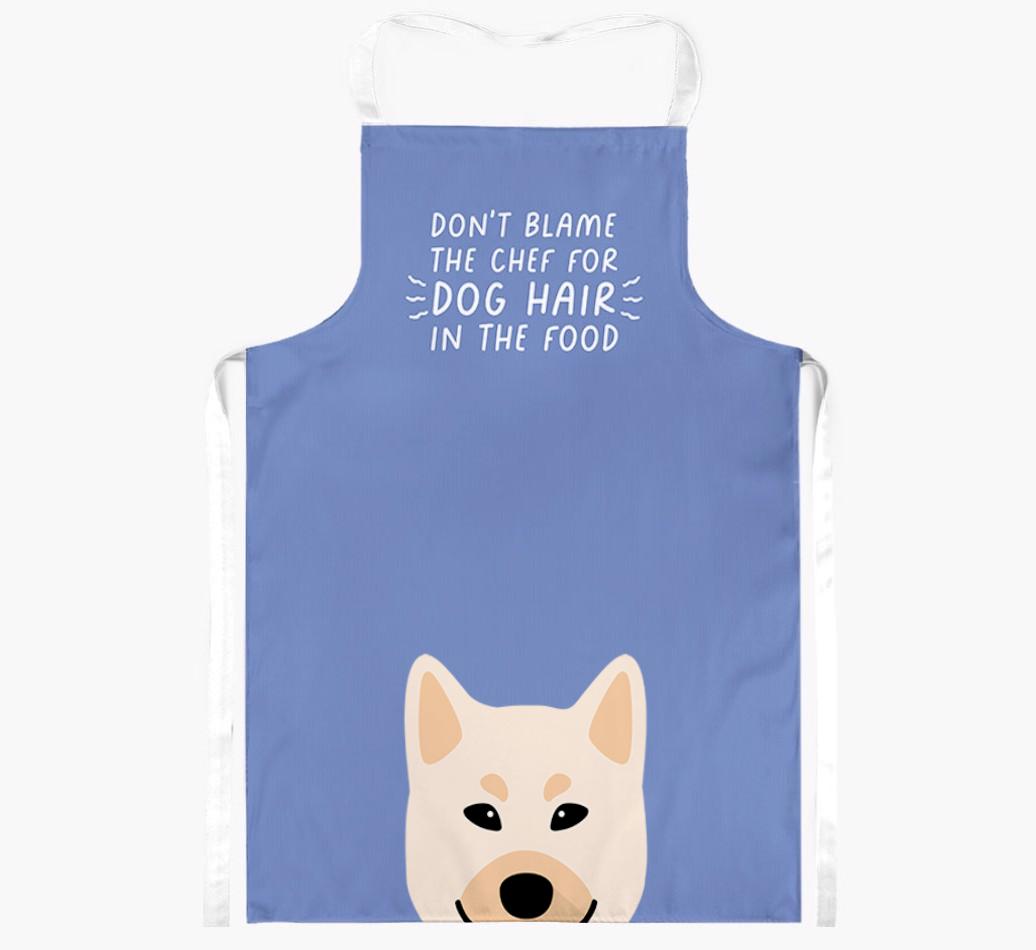 This funny apron will warn friends and family not to blame the chef for dog hairs in their food, they have Norwegian Buhund to thank for that!