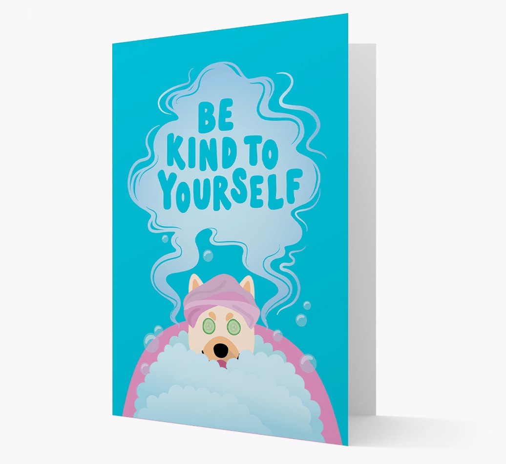 With this furbulous Buhund design, featuring Norwegian Buhund relaxing in a bath with the words ‘Be Kind To Yourself’, this card is the ulti-mutt way to let someone you love know that they need to chill!