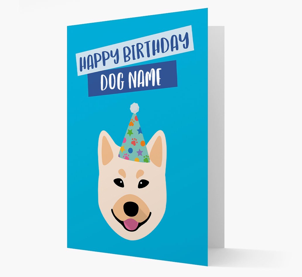 Why not wish Your Buhund Happy Birthday in true pawty style with this party hat birthday card.