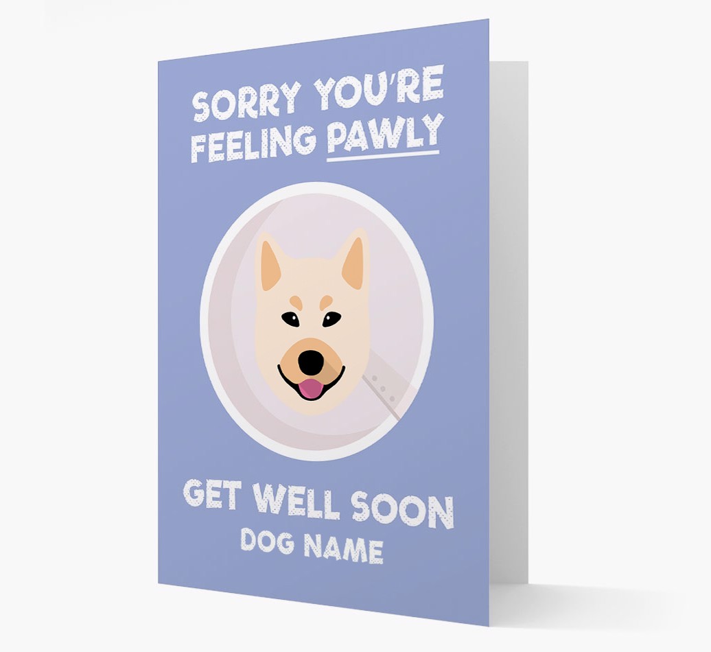 'Sorry You're Feeling Pawly' - Personalized Norwegian Buhund Get Well Soon Card