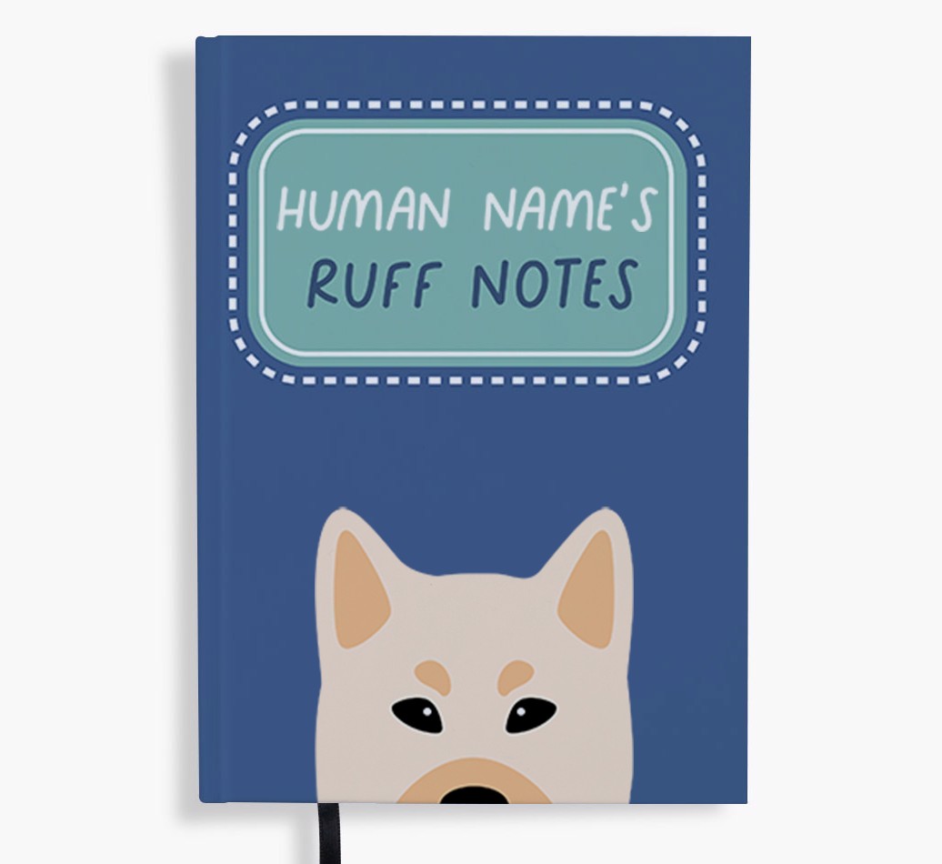 Starring Norwegian Buhund's cute icon and personalized with your name, this vibrant notebook may be a place for your ruff notes, but the cover will always look wagnificent!