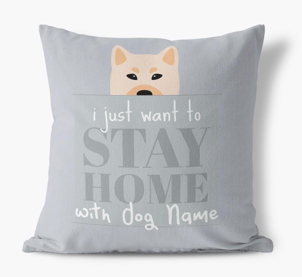 Stay Home: Personalized Norwegian Buhund Canvas Pillow