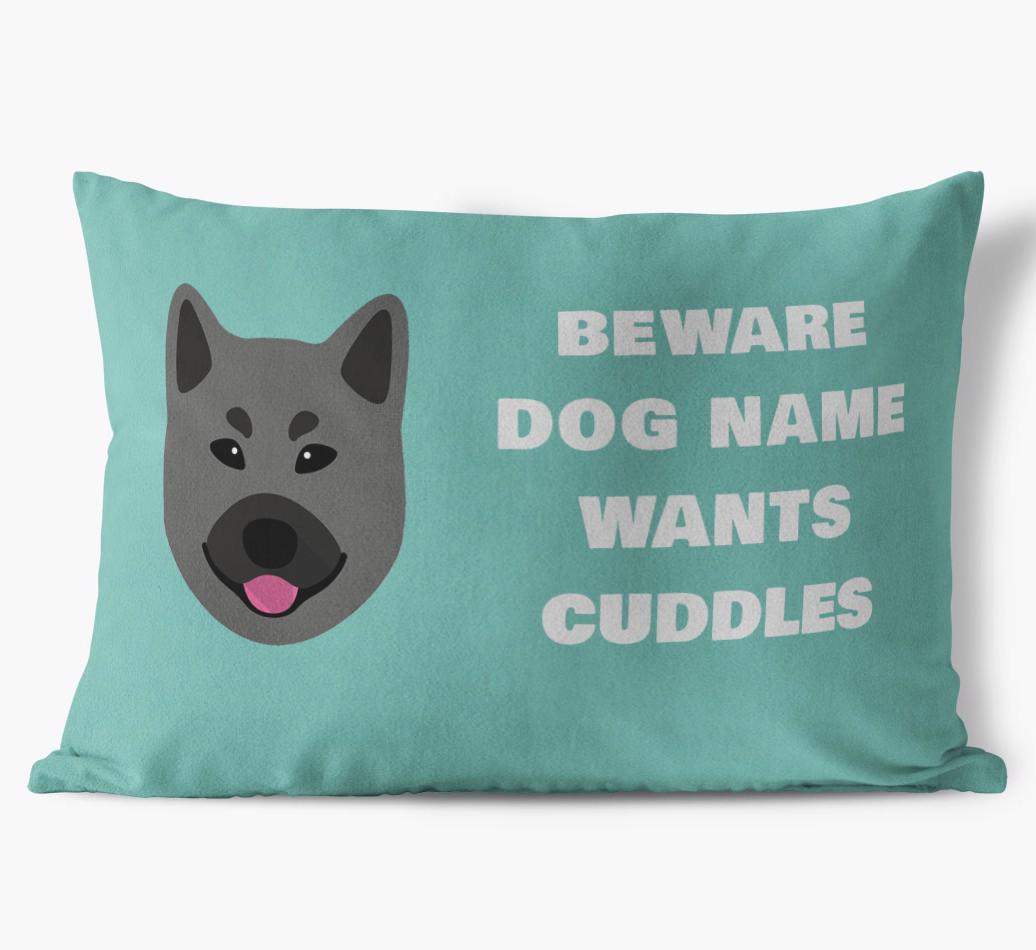 Beware of Cuddles: Personalized Norwegian Elkhound Soft Touch Pillow