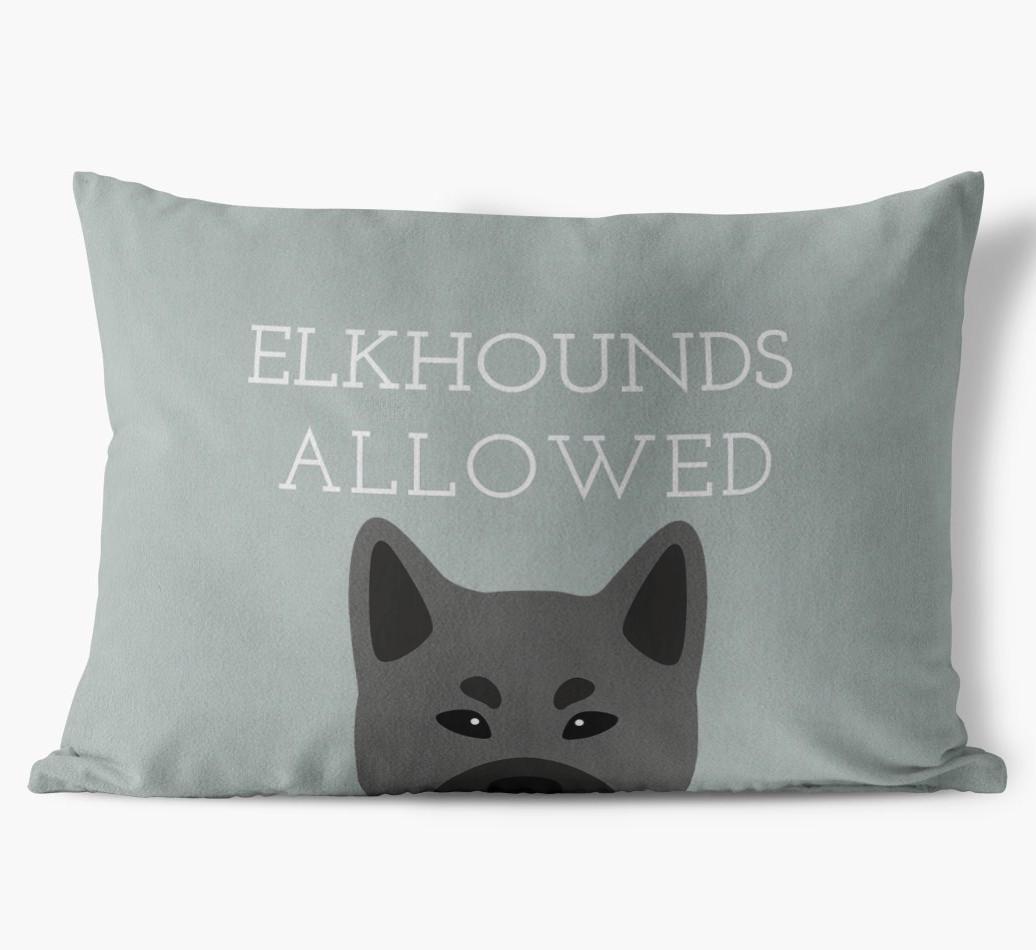This exclusive, luxurious pillow is printed with the words ‘Elkhounds Allowed’, which I’m sure Your Elkhound would definitely approve of.