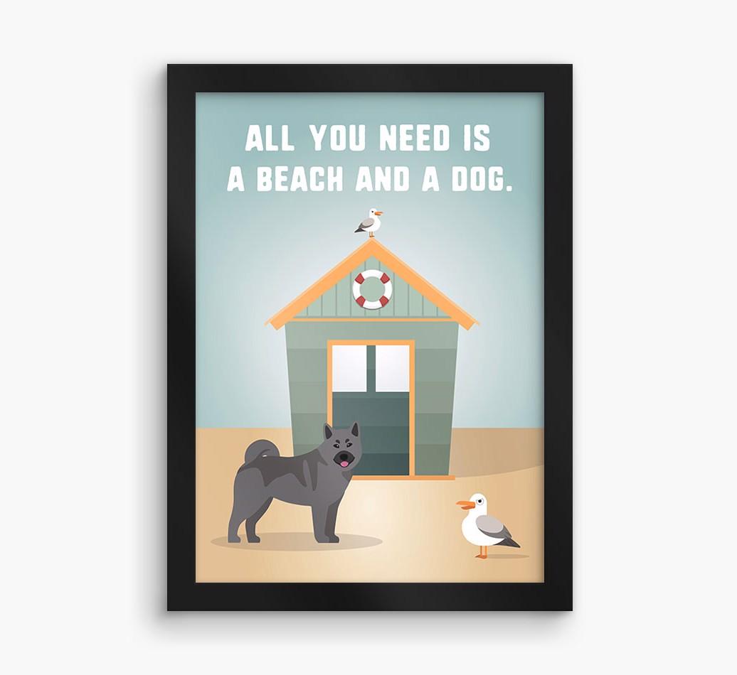 'Beach and a Dog' - Personalized Norwegian Elkhound Framed Print