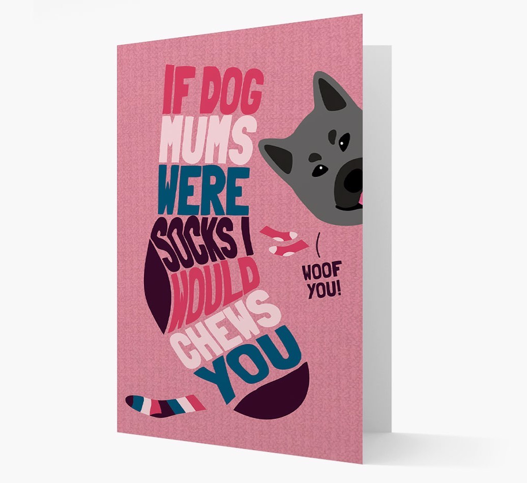 This comical card is pawfect for the Dog Mom who's pawrent to a sock-loving Elkhound.