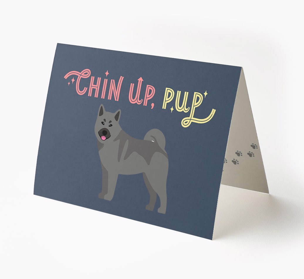 Well, we have the pawfect card just for that! We know that Norwegian Elkhound stating the words ‘Chin Up Pup’ will do just the trick!