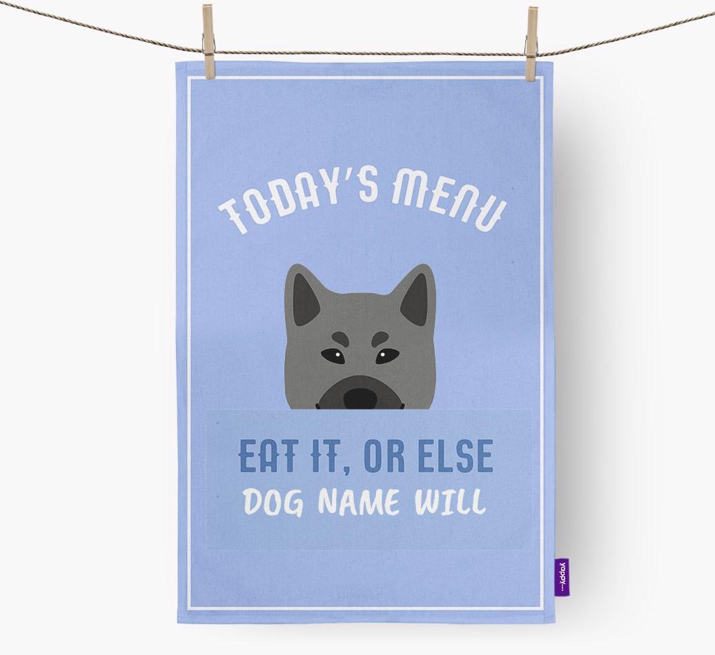 'Eat It, Or Else...' - Personalized Norwegian Elkhound Dish Towel