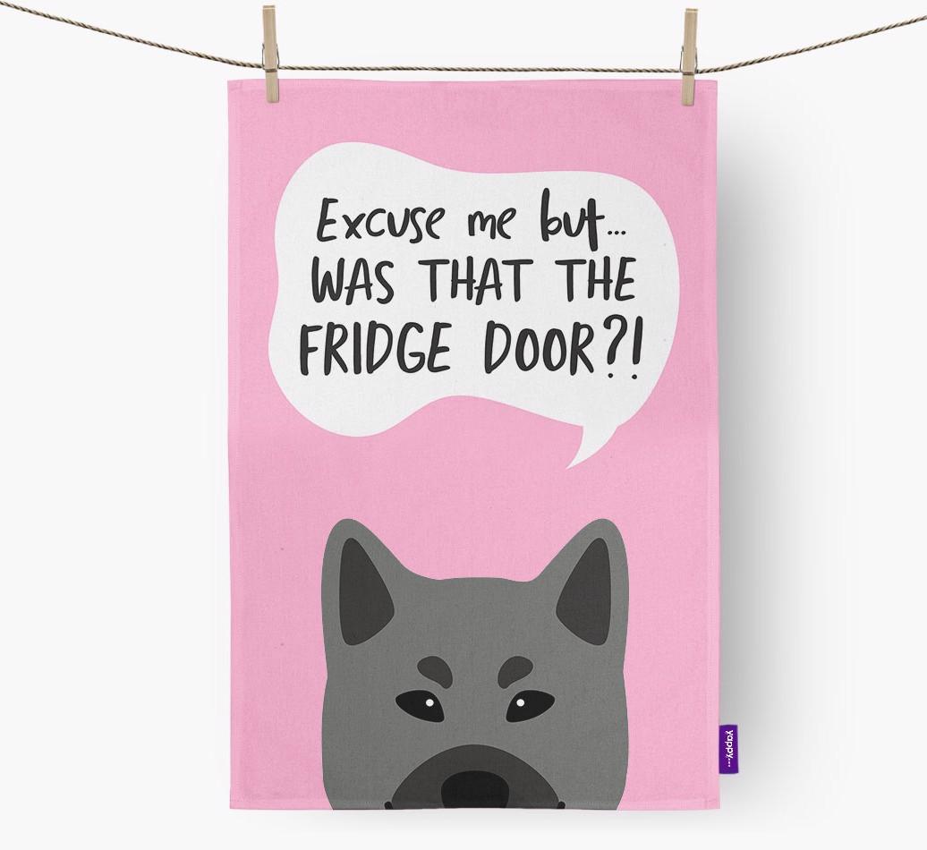 'Was That The Fridge Door?!' - Personalized Norwegian Elkhound Dish Towel
