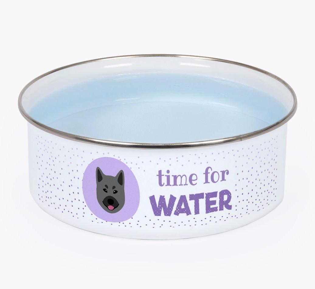 Time For Water: Personalized Enamel Norwegian Elkhound Bowl