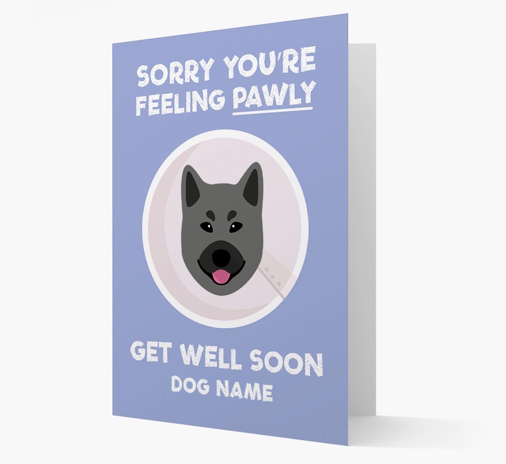 'Sorry You're Feeling Pawly' - Personalized Norwegian Elkhound Get Well Soon Card