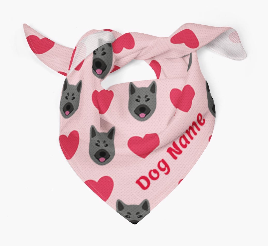 Featuring a pattern of love hearts and Norwegian Elkhound icons, this cute bandana is a woofly way for Norwegian Elkhound to dress up and share the puppy-love!