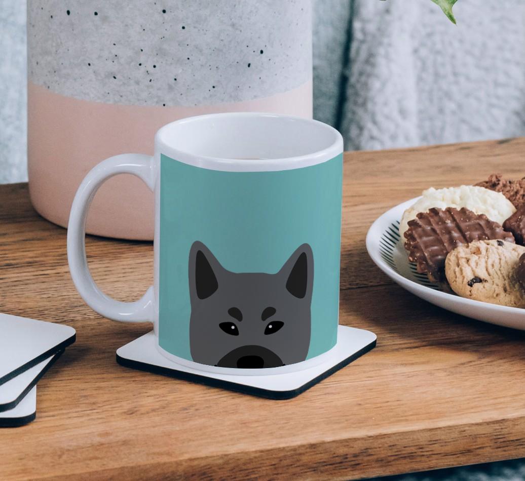 Enjoy the perfect coffee break with a mug that stars your furry friend! Featuring a Yappy.com exclusive Elkhound peeking icon, this pawgeous mug will look at home in any dog lover's kitchen and we're pretty sure Norwegian Elkhound will be a fan too.