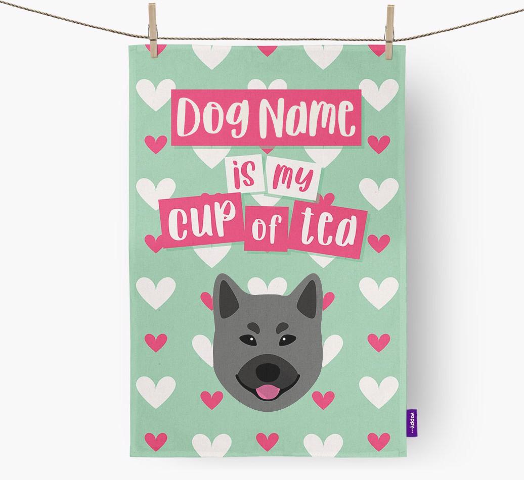 'Norwegian Elkhound Is My Cup of Tea' - Personalized Norwegian Elkhound Dish Towel