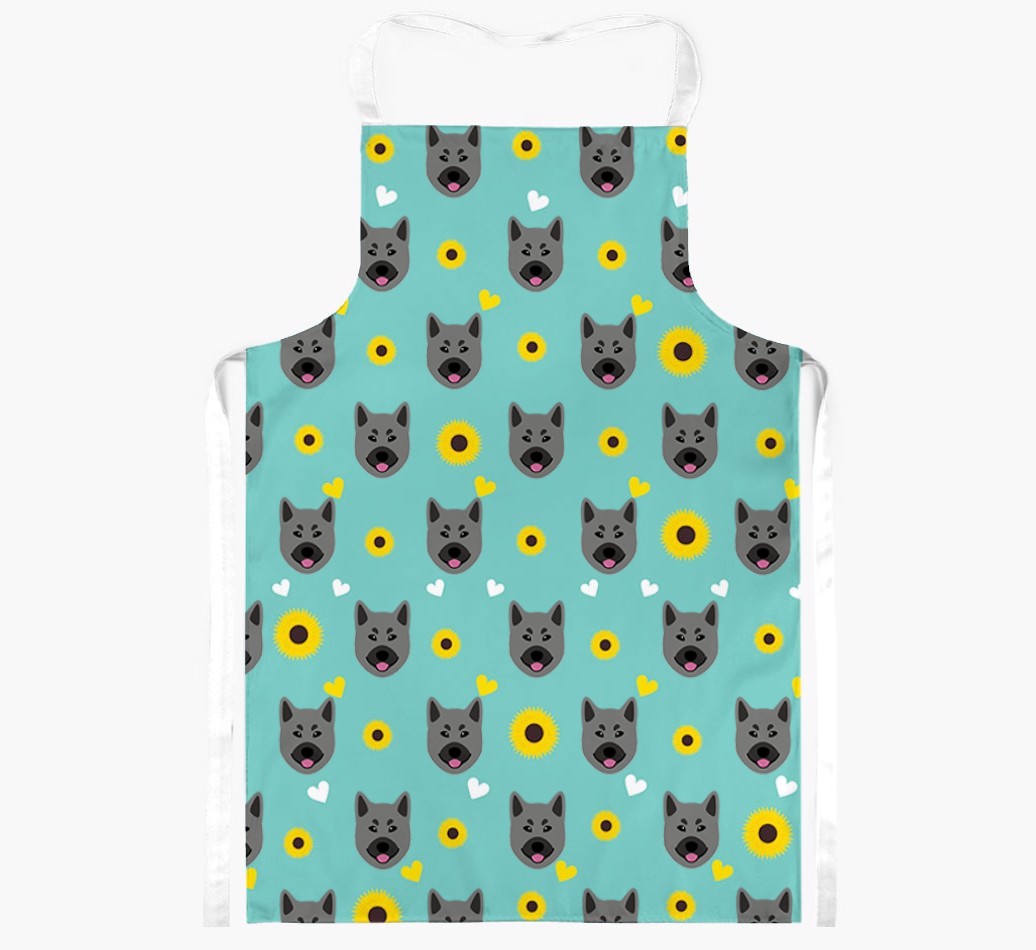 This apron has a delightful sunflower and heart pattern, and best of all - it's personalized with Norwegian Elkhound's face too! This cute and colorful apron is sure to put a smile on every dog lover's face.