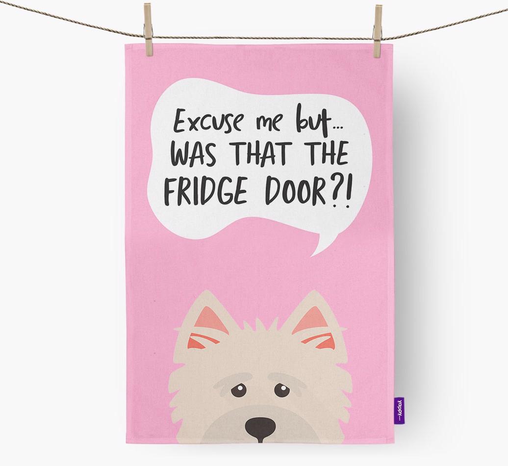 'Was That The Fridge Door?!' - Personalized Norwich Terrier Dish Towel