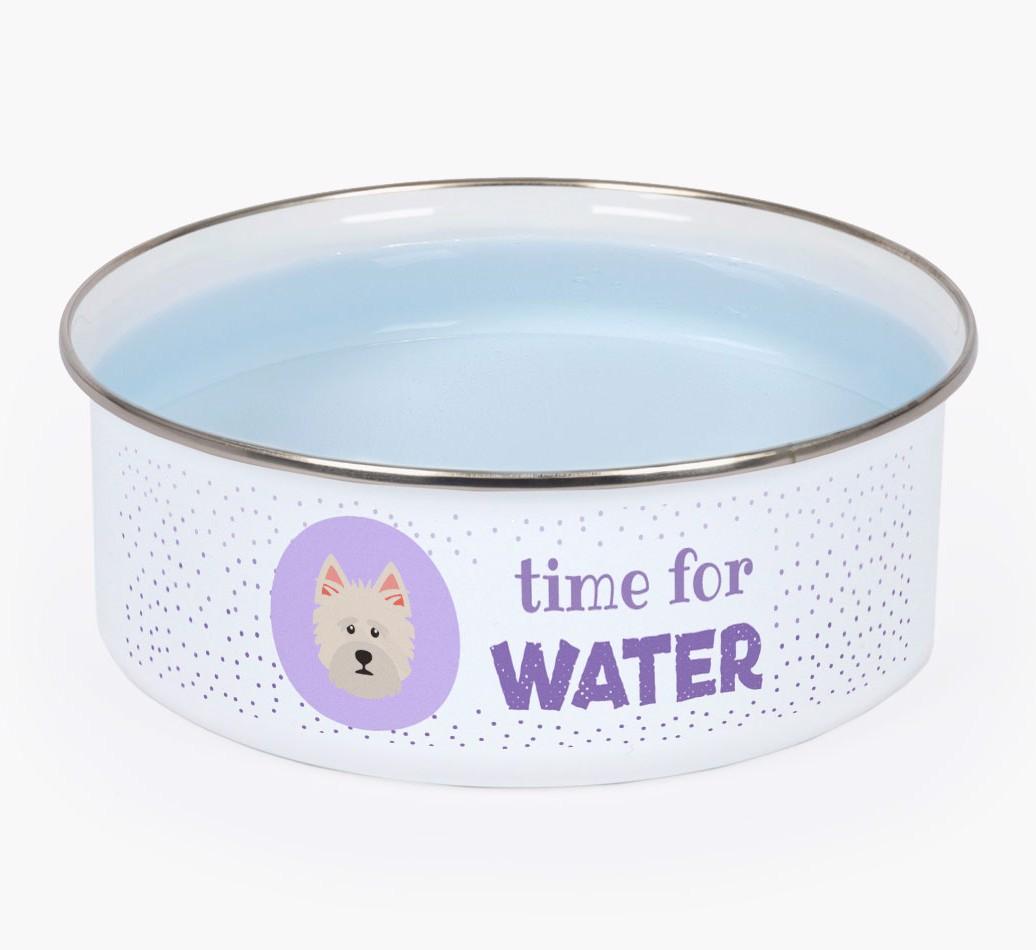 Time For Water: Personalized Enamel Norwich Terrier Bowl