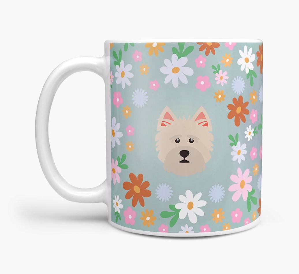 Featuring a colorful bunch of flowers, this mug is printed with the words 'woofly grandma' on one side of the mug and your Terrier's cute icon on the other. Bloomin' lovely!