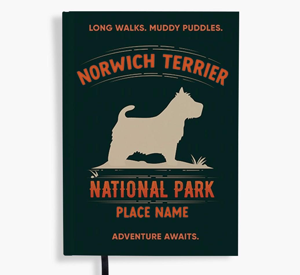 Do you live for long walks with Norwich Terrier? This bold notebook is the perfect place to jot down upcoming adventures with your Terrier, whilst reminding you of your roots with the added place name personalization.