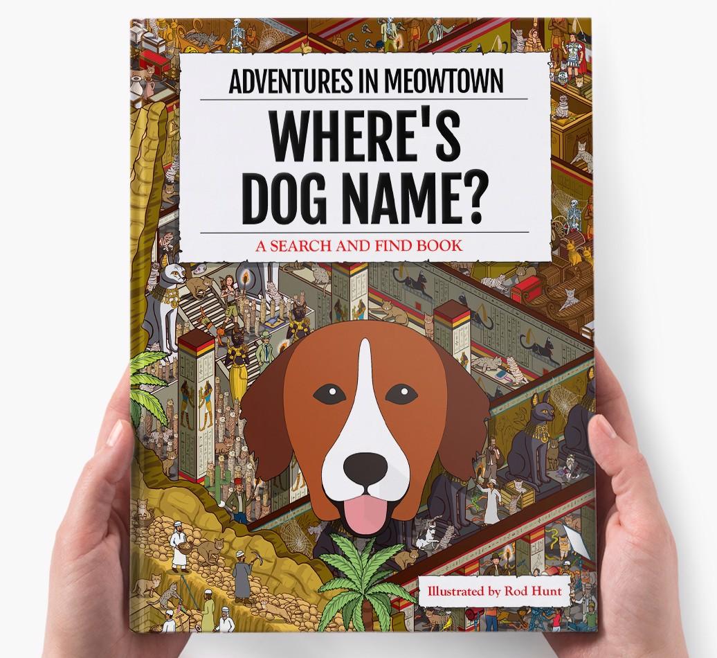 Get ready to unleash your inner detective with our popular Search & Find book, ‘Where’s (insert dog name)?’ It’s the personalized dog book everyone’s yapping about! With twelve beautifully illustrated locations to explore, we challenge you to find your adventurous {breedShortName} on each action-packed page. Can you spot all the canine cameos and funny parodies too?