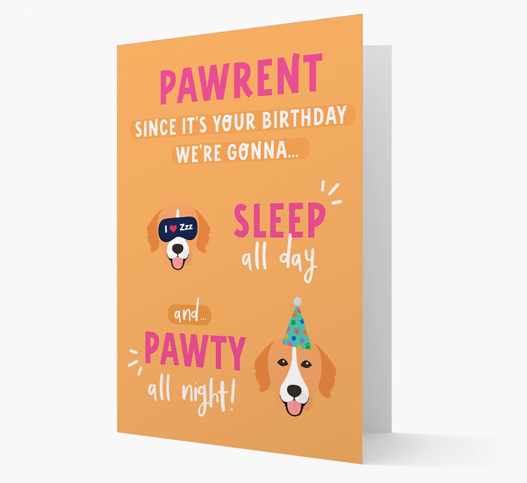 If Nova Scotia Duck Tolling Retriever woofs to pawty all day and sleep all night, this card encourages their pawrent to do it with them on their birthday!