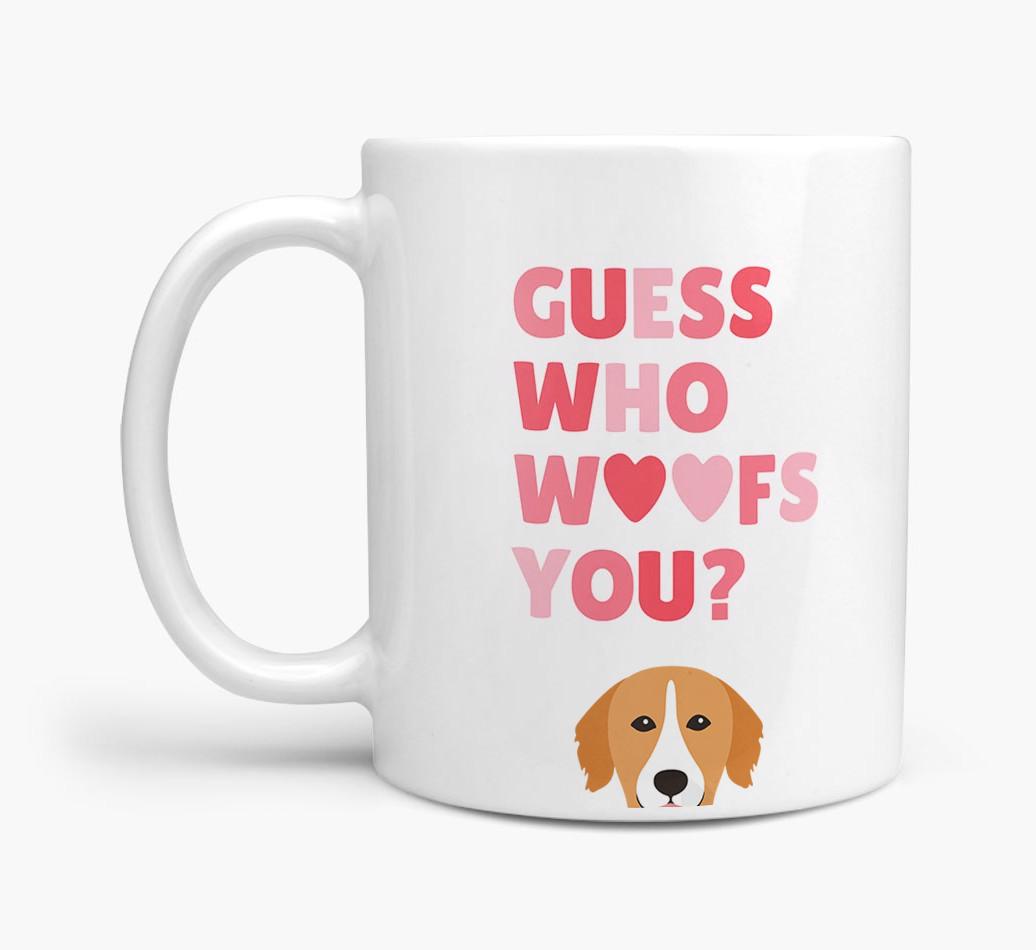 Personalized with Nova Scotia Duck Tolling Retriever's cute face, this adorable mug is perfect for showing off the one who "woofs" you - how sweet!