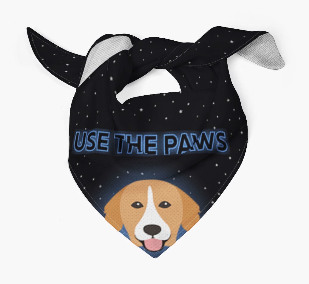 Featuring a starry night sky and glowing text, this bandana is made extra special with the addition of your Toller's cute icon.