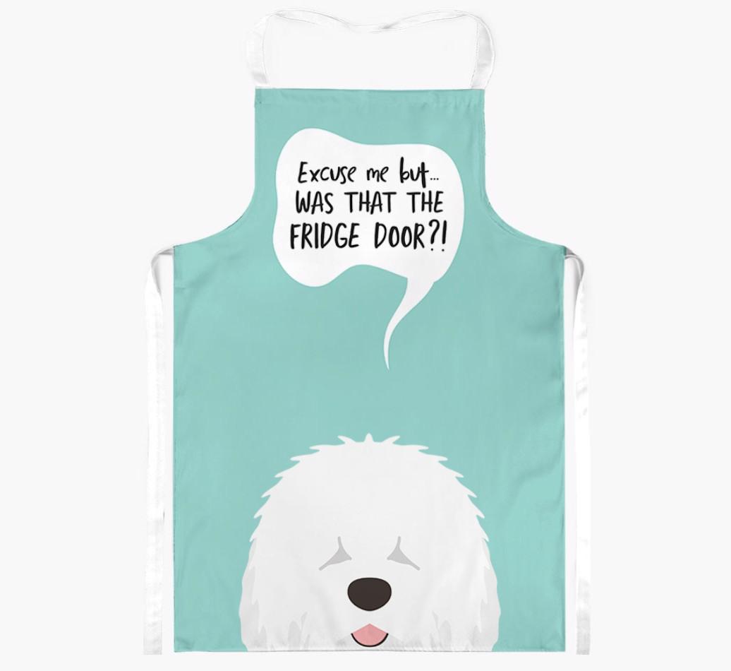 Was That The Fridge Door: Personalized Old English Sheepdog Apron