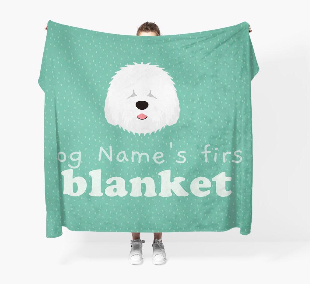'Dog's First Blanket' - Personalized Old English Sheepdog Throw Blanket