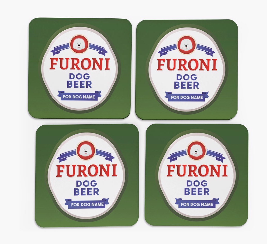 Personalized with Your Sheepdog's icon and name, this 'Furoni" set of coasters is perfect for Old English Sheepdog and beer lovers alike who need to protect their surfaces from burns and spillages.