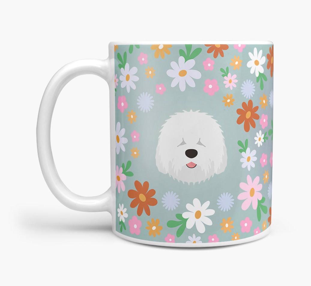 Featuring a colorful bunch of flowers, this mug is printed with the words 'woofly grandma' on one side of the mug and your Sheepdog's cute icon on the other. Bloomin' lovely!