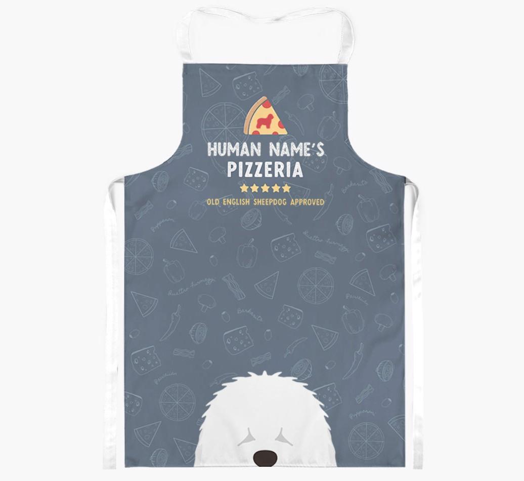 Featuring your furry friend's icon and lick of approval, plus your chosen human name, this apron is pawfect for anyone who considers themselves a pizza maestro in the kitchen. Available in a choice of 5 rustic colors, it'll make any Sheepdog lover happy.